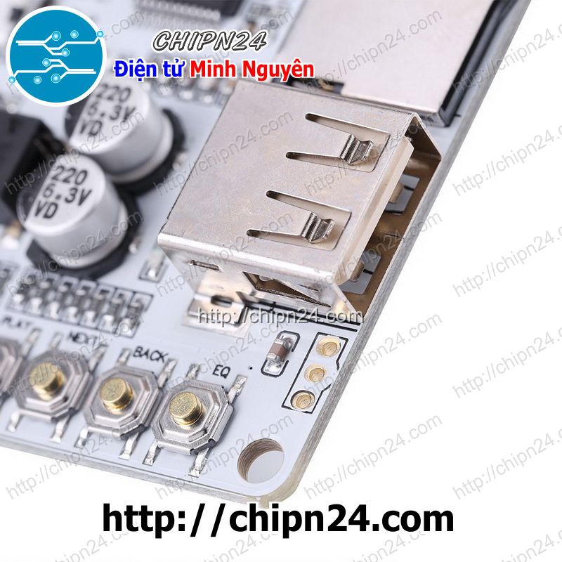 - Có 5 nút nhấn: MODE, PLAY, NEXT, BACK, EQ