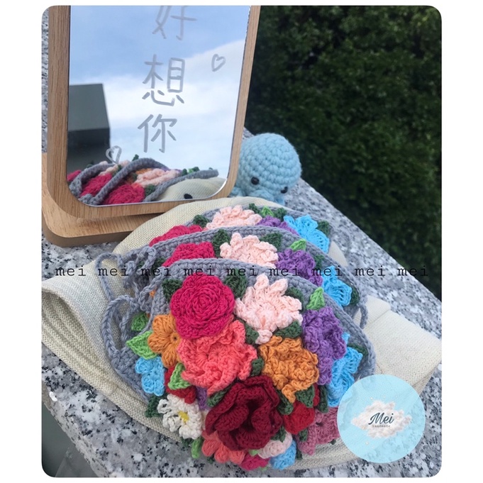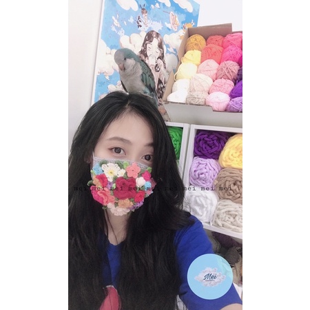(ẢNH  THẬT )Khẩu trang len hoa xinh xắn Made by Mei, khẩu trang len handmade selfie chụp hình cho bạn gái