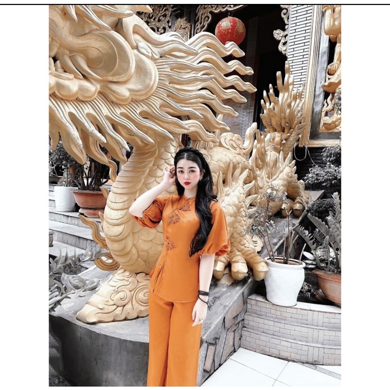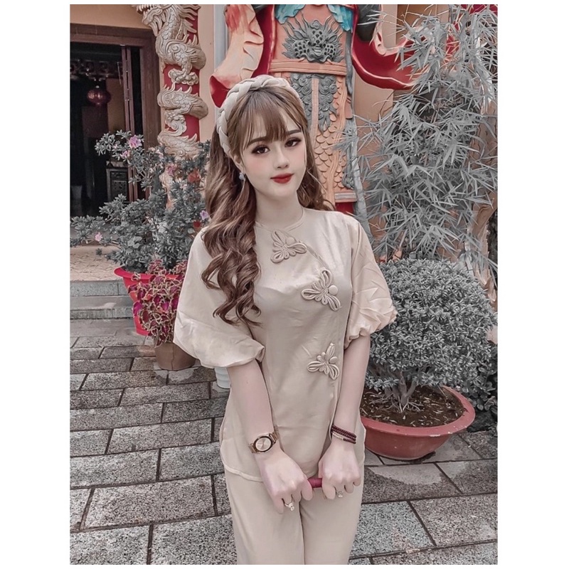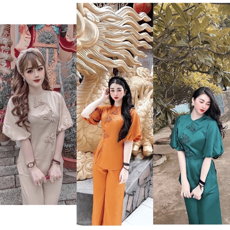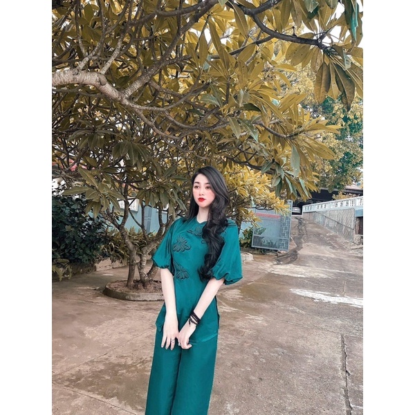 mẫu lam được săn đón trong nhiều ngày qua với chất liệu mịn, dày, mát điểm nhất của set này là 3 nút hoa trước áo tạo cho set lam thêm hài hoà và xinh đẹp hơn
