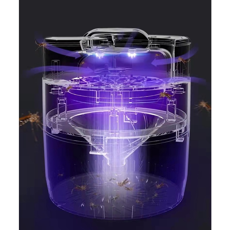 - Cánh quạt: Sau khi muỗi bị dẫn dụ bởi tia UV LED và TiO2 sẽ bị quạt hút vào lồng chứa bên dưới và không cho muỗi bay ngược ra ngoài. Cánh quạt hoạt động với tốc độ cao nhưng tiêu thụ điện năng thấp, không tiếng ồn.