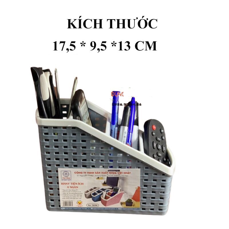 Giỏ đựng đồ đa năng / Khay tiện ích 4 ngăn Việt Nhật nhựa PP cao cấp hộp đựng bút để bàn trong suốt nhỏ gọn