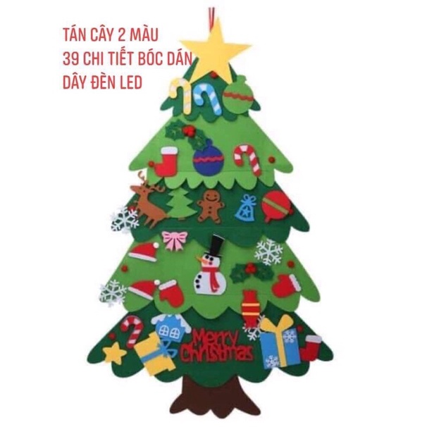 [ HÀNG SẴN ] Cây thông trang trí treo tường vải dạ( 32 chi tiết tặng kèm đèn led)