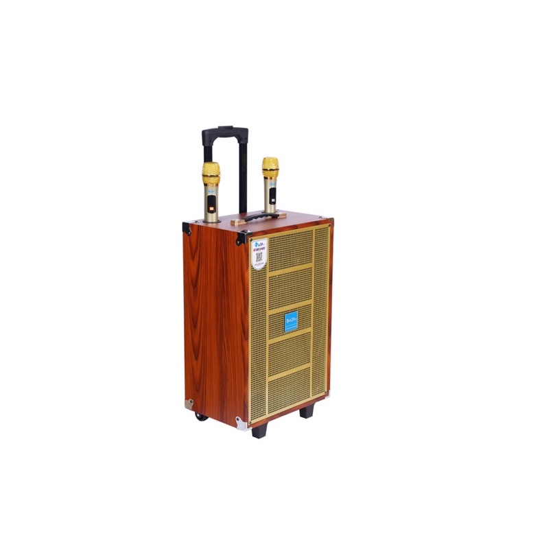 Tính Năng Nổi Bật - Thiết kế vỏ gỗ vuông bắt mắt - 02 Microphone Không Dây - FPX Trống rú - Điều Khiển Từ Xa - Kết Nối Bluetooth - Kết Nối USB/IF/FM/AUX - Ghi Âm - Kết Nối vs đàn Guitar Thông Số Kỹ Thuật - Bass: 30 - Loa bass 12” + treble - Công Suất: 60-700W - Loa tuýt tơ: 45Hz-18KHz - Độ nhạy: 85dB(+-2) - Tần số microphone: 230.7-254.6MHz - 02 cổng cắm micro có dây và 01 cổng Guitar - Nguồn Cấp AC110V-260V 60/50hz - Dung Dượng Acquy: 12V4,5AH - Cổng mở rộng thêm bình điện 12V để tăng thời gian phát - Chức năng chỉnh trên loa: 9 núm chính gồm: Volume, bass, treble, echo,Delay, G.vol... - Trọng Lượng Loa: 12,1kg - Trọng lượng cả vỏ: 13,4kg - Kick Thước: 403x313x620mm loa kéo