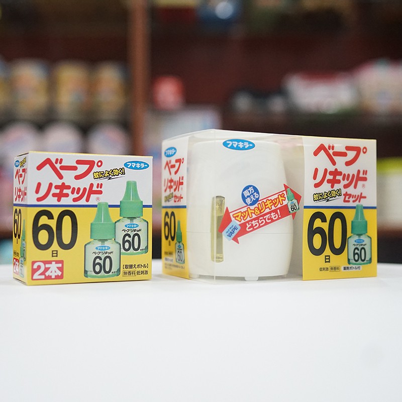 - Đi kèm với máy xông muỗi Nhật là một lọ tinh dầu đuổi muỗi thiên nhiên của Nhật 45ml, dùng cho phòng khoảng 20m2 – 30m2. Một lọ 45ml có thể dùng trong khoảng 700h. Khi hết có thể mua lọ khác thay thế.