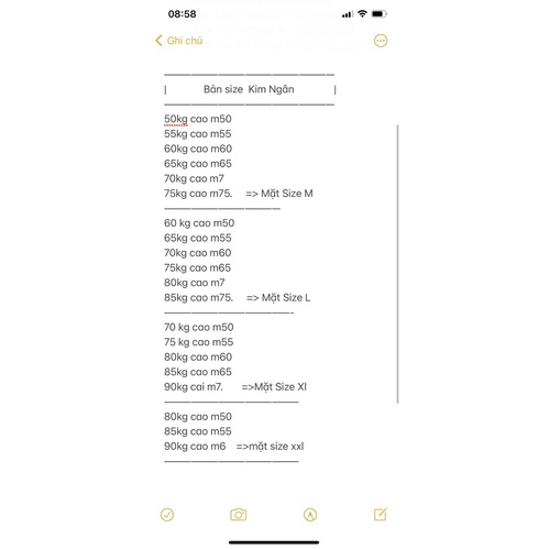 | Bản size Kim Ngân |