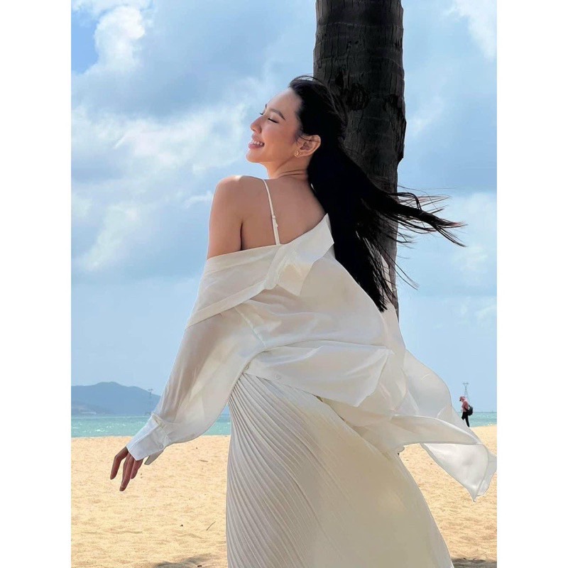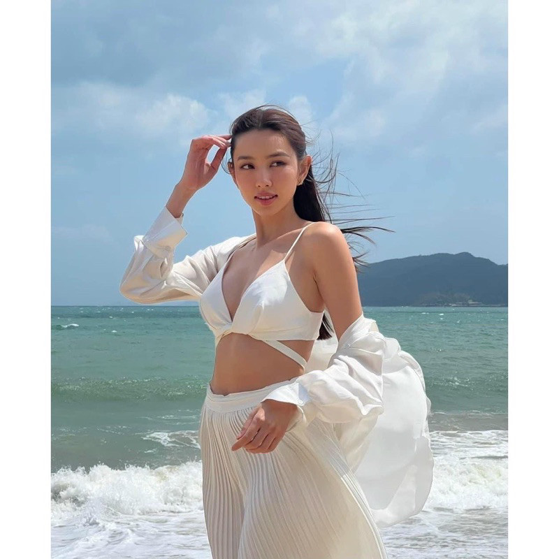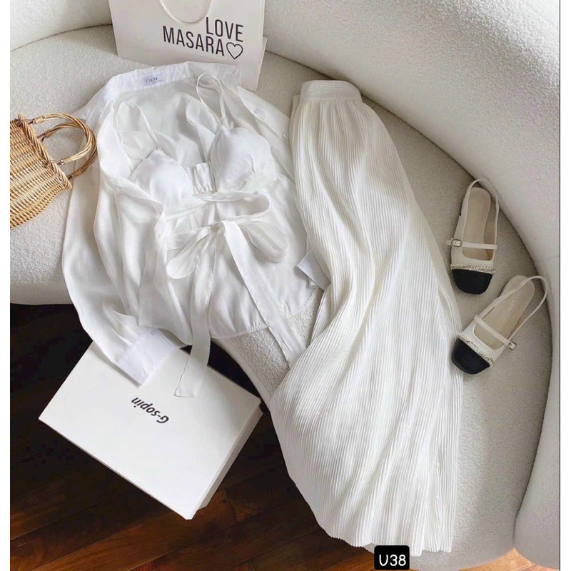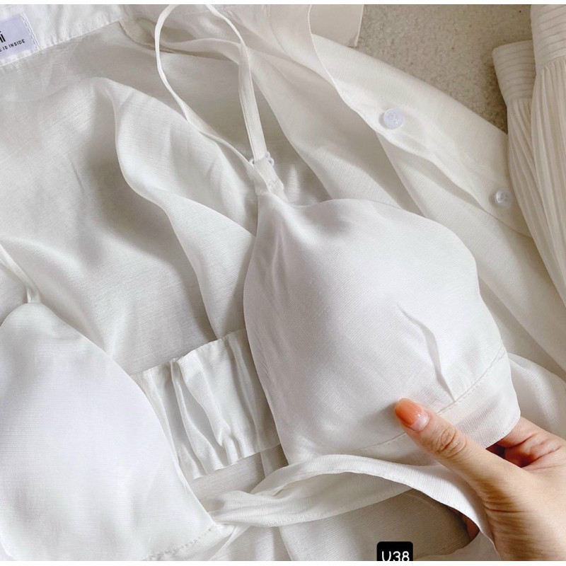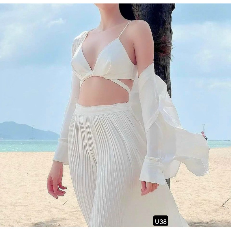 Set Đi Biển 3 Món Khoác Sơ Mi Áo Bra Kèm Quần Dài Dập Ly Trắng, Set 3 Món Trắng Đi Biển Hàng Loại 1 Sang Chảnh