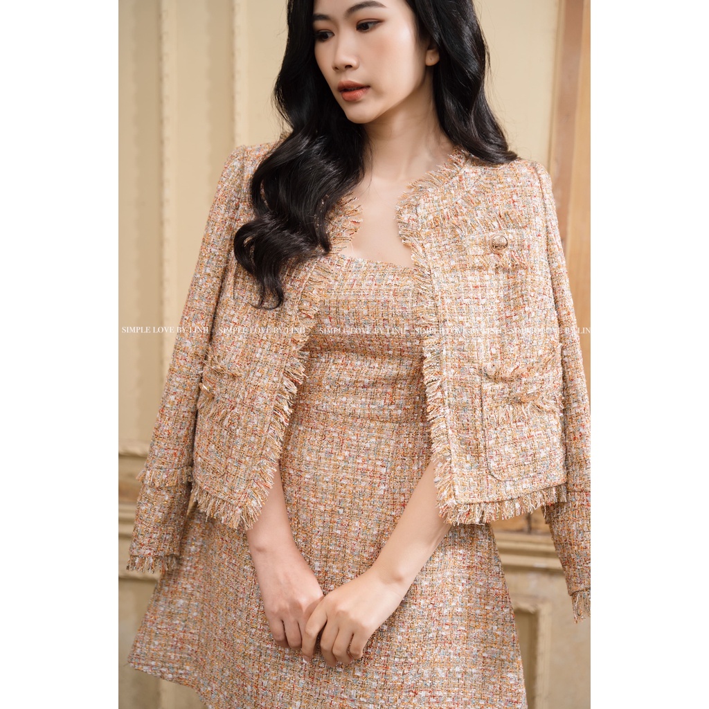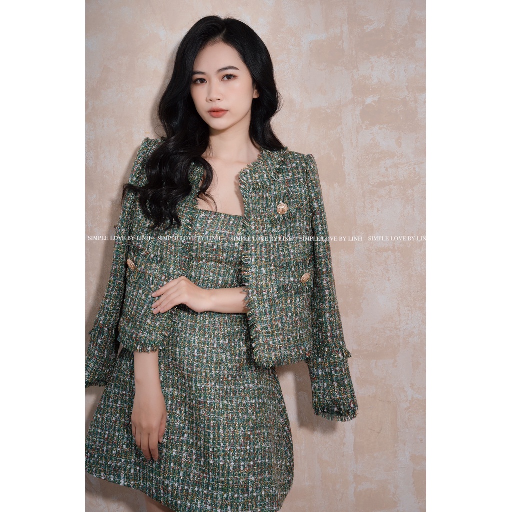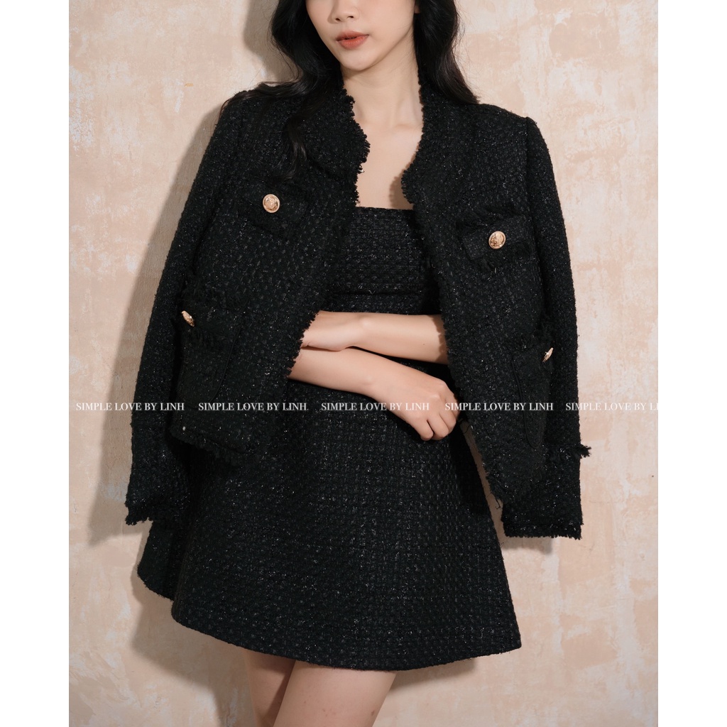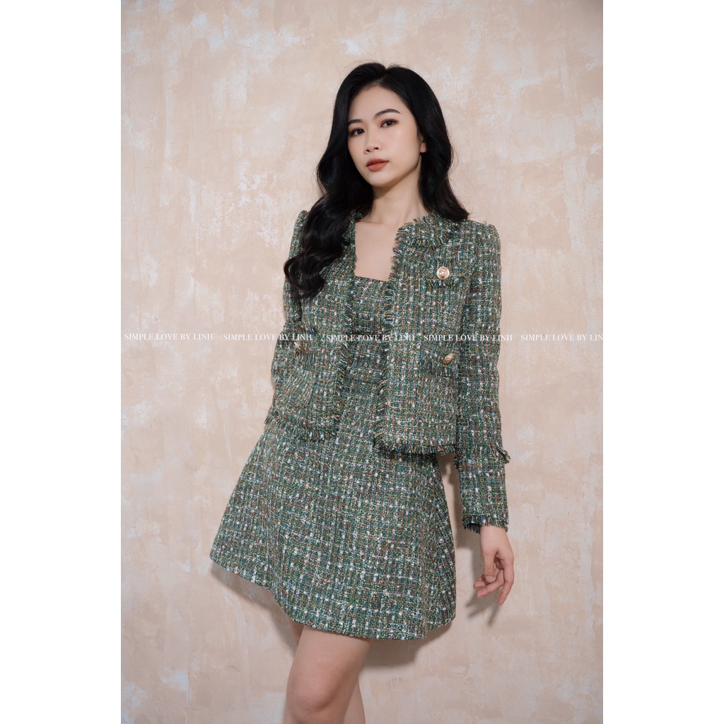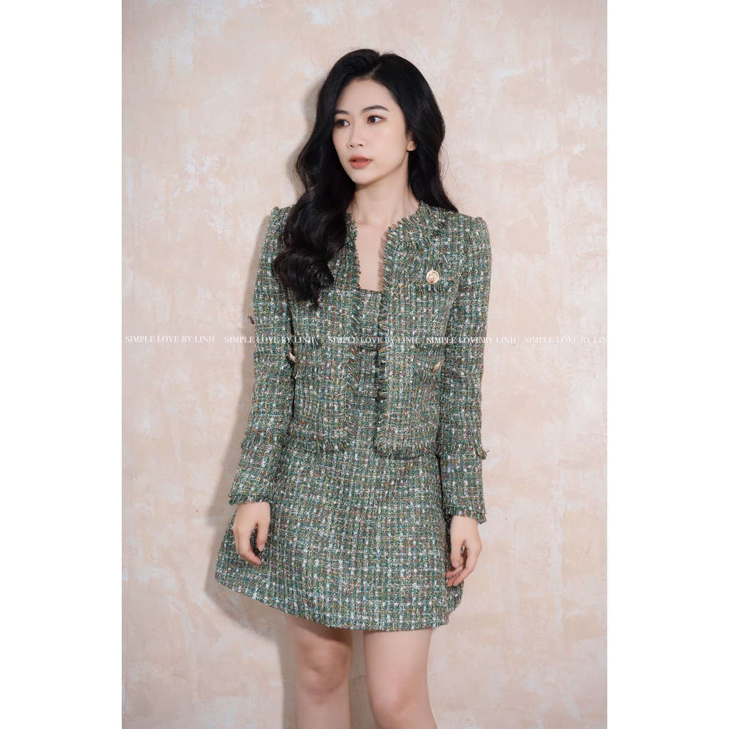 Set váy dạ tweed váy ngắn hàng thiết kế cao cấp
